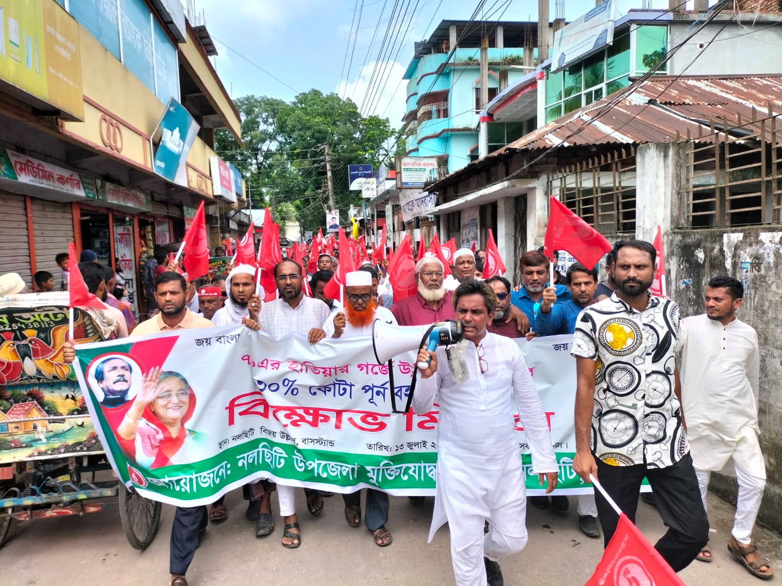 ঝালকাঠির নলছিটিতে কোটা বিরোধী আন্দোলনের প্রতিবাদে বিক্ষোভ মিছিল ও সমাবেশ করা হয়েছে।