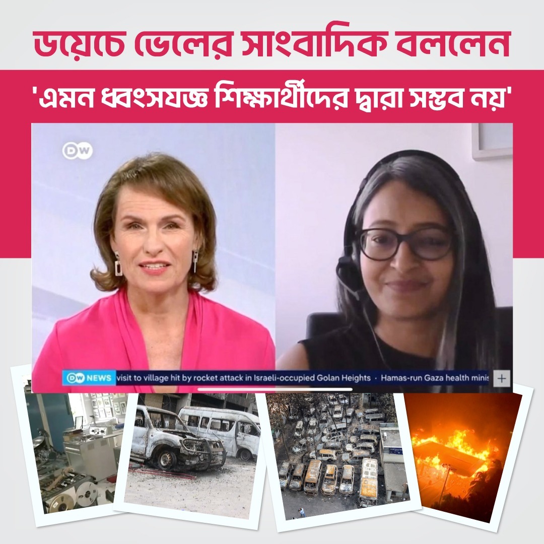 সম্প্রতি বাংলাদেশ সফর শেষে কোটা সংস্কার আন্দোলনের কারণে সৃষ্ট সহিংসতা ও পরবর্তী বাংলাদেশ বিষয়ে মন্তব্য করতে গিয়ে জার্মানভিক্তিক সংবাদমাধ্যম ডয়েচে ভেলের এশিয়া বিভাগের প্রধান দেবারতি গুহ বলেছেন, ‘এমন ধ্বংসযজ্ঞ শিক্ষার্থীদের দ্বারা সম্ভব নয়।’