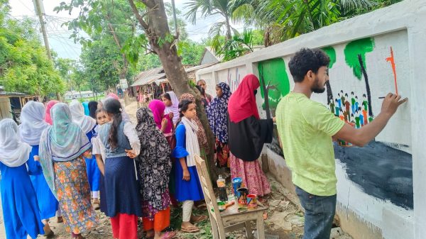 ২৪ এর আন্দোলনে যারা অকাতরে প্রান দিয়ে গেল এ জাতিকে দিল সত্যিকারের সোনার বাংলাদেশ তা কোনদিন ও ভূলার নয়।তাদের স্মরনে এ আলপনা আঁকা যেন পরবর্তী প্রজন্ম ইতিহাস জানতে পারে।ছাত্র আন্দোলন এর একজন মোঃ সংবাদমাধ্যম কে বলেন,পুলিশরা যেভাবে গুলি চালিয়ে তাজা প্রান কেঁড়ে নিল তাদেরকে এ বাংলাদেশ কোন দিনও ভুলবে না।আমরা চাই যে পুলিশ গুলো আমাদেরকে গুলি করেছেন তাদের কে বাংলাদেশের সর্বোচ্চ শাস্তি কমনা করছি।