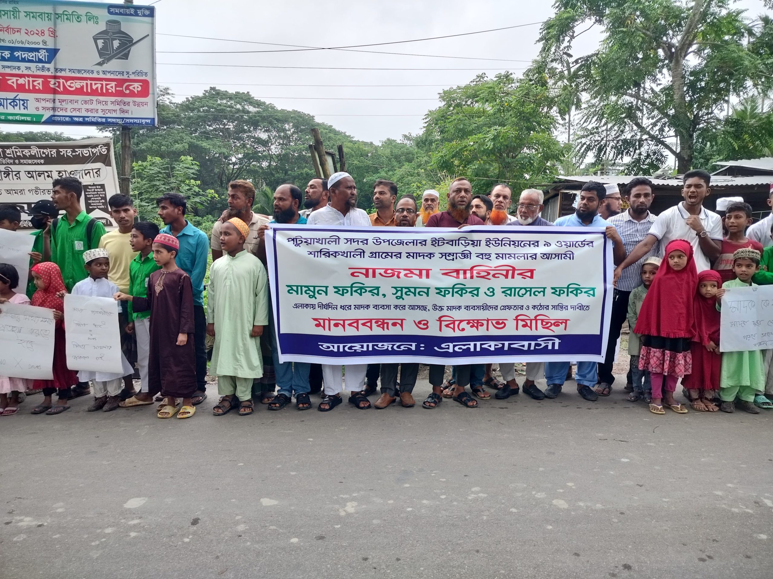 পটুয়াখালীতে মাদক ব্যবসা নির্মূল করতে এলাকাবাসীর মানববন্ধন ও বিক্ষোভ মিছিল