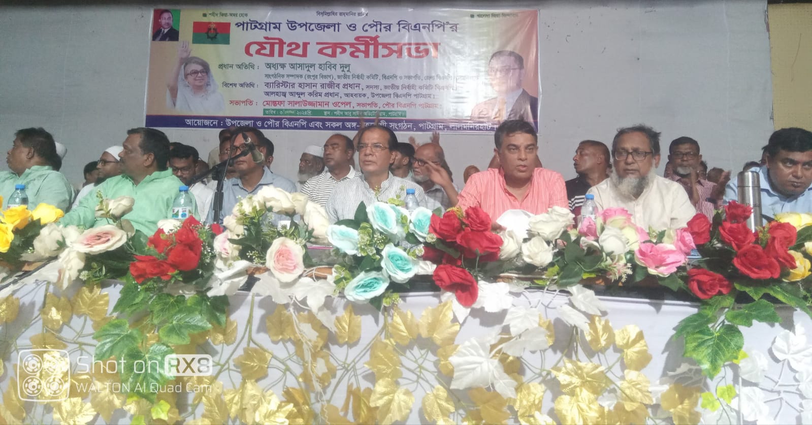 অধ্যক্ষ আসাদুল হাবিব দুলু মহাদয়। পাটগ্রাম পৌর বিএনপির সভাপতি জনাব মোং মোস্তফা সালাউজ্জামান ওপেল তাঁর সভাপতিত্বে এ সভায় বিশেষ অতিথি হিসেবে উপস্থিত ছিলেন জাতীয় নির্বাহী কমিটির সদস্য ব্যারিস্টার হাসান রাজীব প্রধান।