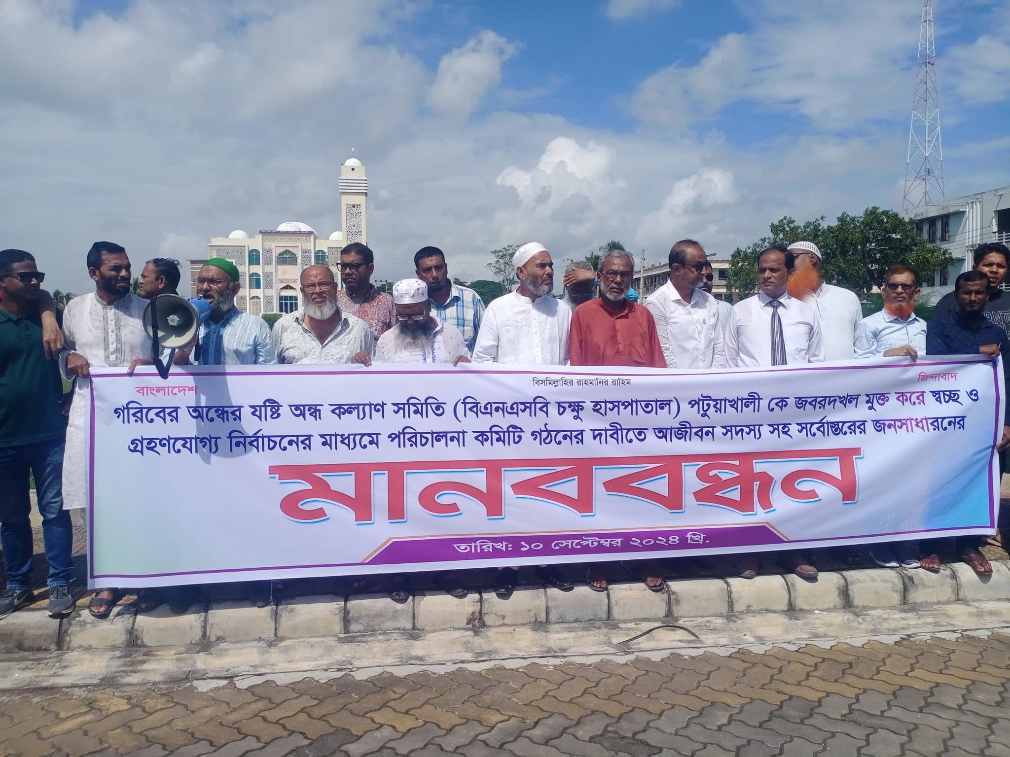 পটুয়াখালীতে গরীবের অন্ধের ষষ্টি অন্ধ কল্যাণ সমিতি (বিএনএসবি চক্ষু হাসপাতাল) জবরদখল মুক্ত করে স্বচ্ছ ও গ্রহণযোগ্য নির্বাচনের মাধ্যমে পরিচালনা কমিটি গঠনের দাবিতে মানববন্ধন অনুষ্ঠিত হয়েছে। মঙ্গলবার (১০ সেপ্টেম্বর) সকাল ১০টায় জেলা প্রশাসক কার্যালয়ের সামনে ঘণ্টাব্যাপী এই মানববন্ধন কর্মসূচি পালন করা হয়।