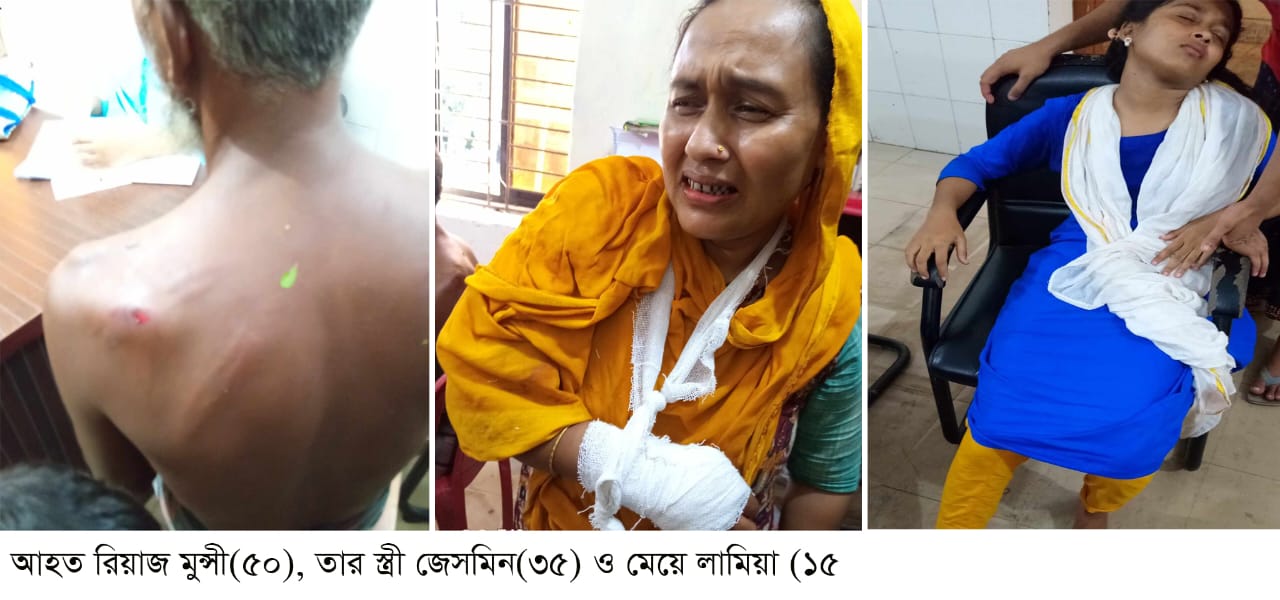 আহতরা হলেন- রিয়াজ মুন্সী, তার স্ত্রী জেসমিন ও তার মেয়ে ৯ম শ্রেণির ছাত্রী লামিয়া এবং মহসিন মাতব্বরের স্ত্রী শাহনাজ ও তার ছেলে মেহেদি মাতব্বর। রিয়াজের পরিবারের তিনজন বাউফল উপজেলা স্বাস্থ্য কমপ্লেক্সে ভর্তি আছেন। অন্য প্রতিপক্ষের মা-ছেলে প্রাথমিক চিকিৎসা নিয়েছেন বলে জানা গেছে৷