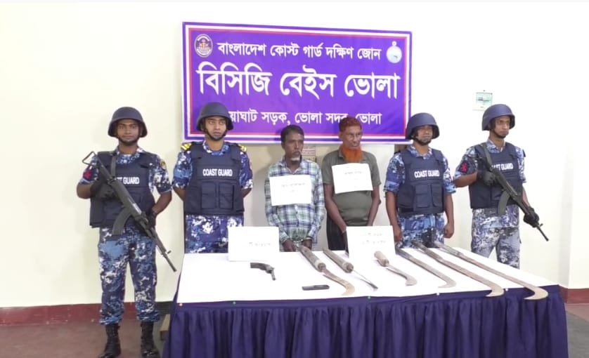 ভোলায় দুর্ধর্ষ জলদস্যু রাসেল বাহিনীর দুই সদস্যকে অস্ত্রসহ আটক করেছেন কোষ্টগার্ড