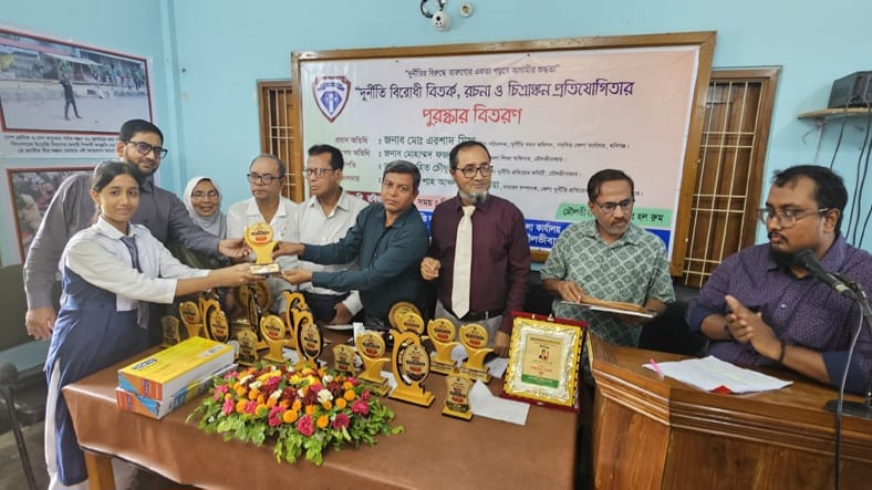 রবিবার (২০ই জুলাই) রবিবার বিকেলে মৌলভীবাজার প্রেসক্লাব হল রুমে দুর্নীতি দমন কমিশন (দুদক) এর সার্বিক সহযোগিতায় ও জেলা দুর্নীতি প্রতিরোধ কমিটির আয়োজনে প্রধান অতিথির বক্তব্যে শেষে প্রতিযোগীতায় বিজয়ী শিক্ষার্থীদের মধ্যে পুরষ্কার হিসেবে সনদপত্র, ক্রেস্ট ও শিক্ষা উপকরণ তুলে দেন দুর্নীতি দমন কমিশন, সমন্বিত জেলা কার্যালয় হবিগঞ্জের উপ-পরিচালক মোঃ এরশাদ মিয়া।