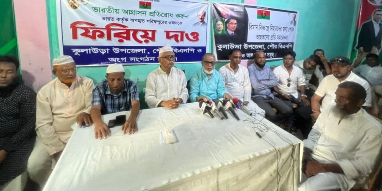 ভারতীয় আগ্রাসন প্রতিরোধ ও বিএসএফ কর্তৃক মৌলভীবাজারের কুলাউড়া উপজেলার শরীফপুর ইউনিয়নের সীমান্তবর্তী এলাকা থেকে ৩ জন বাংলাদেশীকে ধরে নিয়ে যাওয়ার প্রতিবাদ এবং তাদের ৪৮ ঘন্টার মধ্যে ফিরিয়ে দেওয়ার দাবি জানিয়েছেন বিএনপি নেতারা।