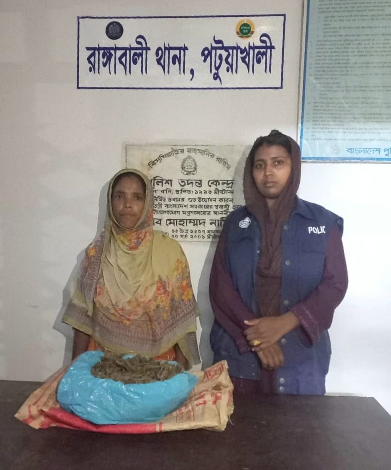 রাঙ্গাবালীতে ১ কেজি ৬০ গ্রাম গাঁজাসহ নারী গ্রেফতার, স্বামী পলাতক