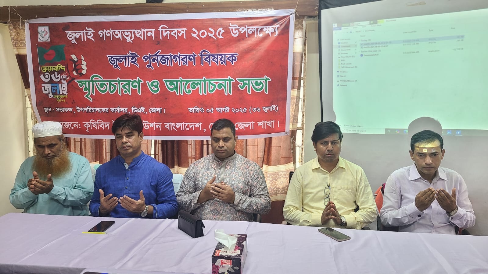 ভোলার কৃষিবিদদের ঐতিহাসিক 'জুলাই গণঅভ্যুত্থান দিবস যথাযোগ্য মর্যাদায় পালিত হয়েছে। এ উপলক্ষে কৃষিবিদ ইনস্টিটিউশন বাংলাদেশ (কেআইবি), ভোলা জেলা শাখার উদ্যোগে একটি স্মৃতিচারণ ও আলোচনা সভার আয়োজন করা হয়।