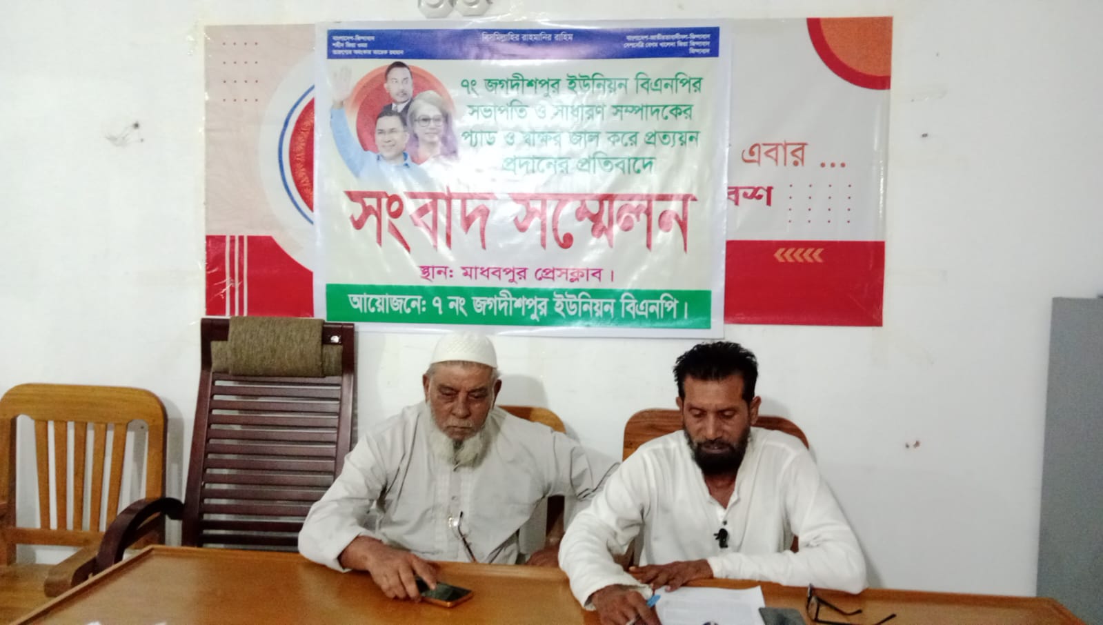 মাধবপুরে প্যাড ও স্বাক্ষর জালিয়াতির প্রতিবাদে ইউনিয়ন বিএনপির সংবাদ সম্মেলন