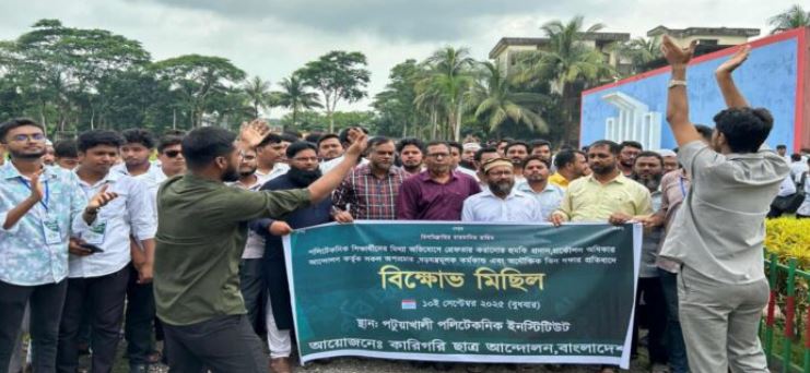 বাংলাদেশ ডিপ্লোমা ইঞ্জিনিয়ারিং ছাত্র-শিক্ষক-পেশাজীবী সংগ্রাম পরিষদের কেন্দ্রীয় কর্মসূচির অংশ হিসেবে পটুয়াখালীতে ৭ দফা দাবির বাস্তবায়নে সমাবেশ ও মিছিল অনুষ্ঠিত হয়েছে। বুধবার (১০ সেপ্টেম্বর) দুপুরে পটুয়াখালী পলিটেকনিক ইনস্টিটিউট প্রাঙ্গণে এ কর্মসূচি ...বিস্তারিত পড়ুন