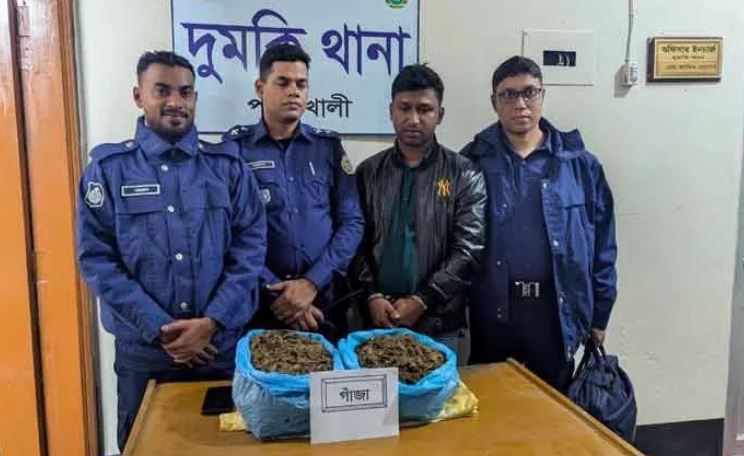 পটুয়াখালীর দুমকি উপজেলার পায়রা সেতুর টোলপ্লাজায় সোমবার (২৪ নভেম্বর) রাত সাড়ে ১০টার দিকে নিয়মিত তল্লাশিকালে পুলিশ ৩ কেজি ৩০০ গ্রাম গাঁজাসহ রোমান মোল্লা (৩৫) নামে এক মাদক ব্যবসায়ীকে গ্রেফতার করেছে। ...বিস্তারিত পড়ুন