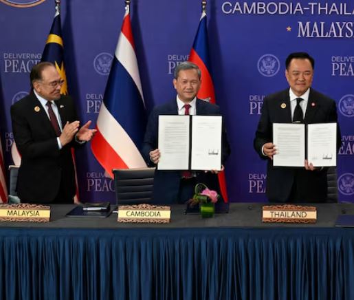 থাইল্যান্ড এবং কম্বোডিয়া শনিবার একটি যুদ্ধবিরতি চুক্তি স্বাক্ষর করেছে, যা দক্ষিণ-পূর্ব এশিয়ার এই দুই প্রতিবেশী দেশের মধ্যে সাম্প্রতিক বছরগুলোর সবচেয়ে তীব্র সীমান্ত সংঘর্ষের অবসান ঘটিয়েছে। চুক্তি অনুসারে, দুপুর ১২টা (জিএমটি