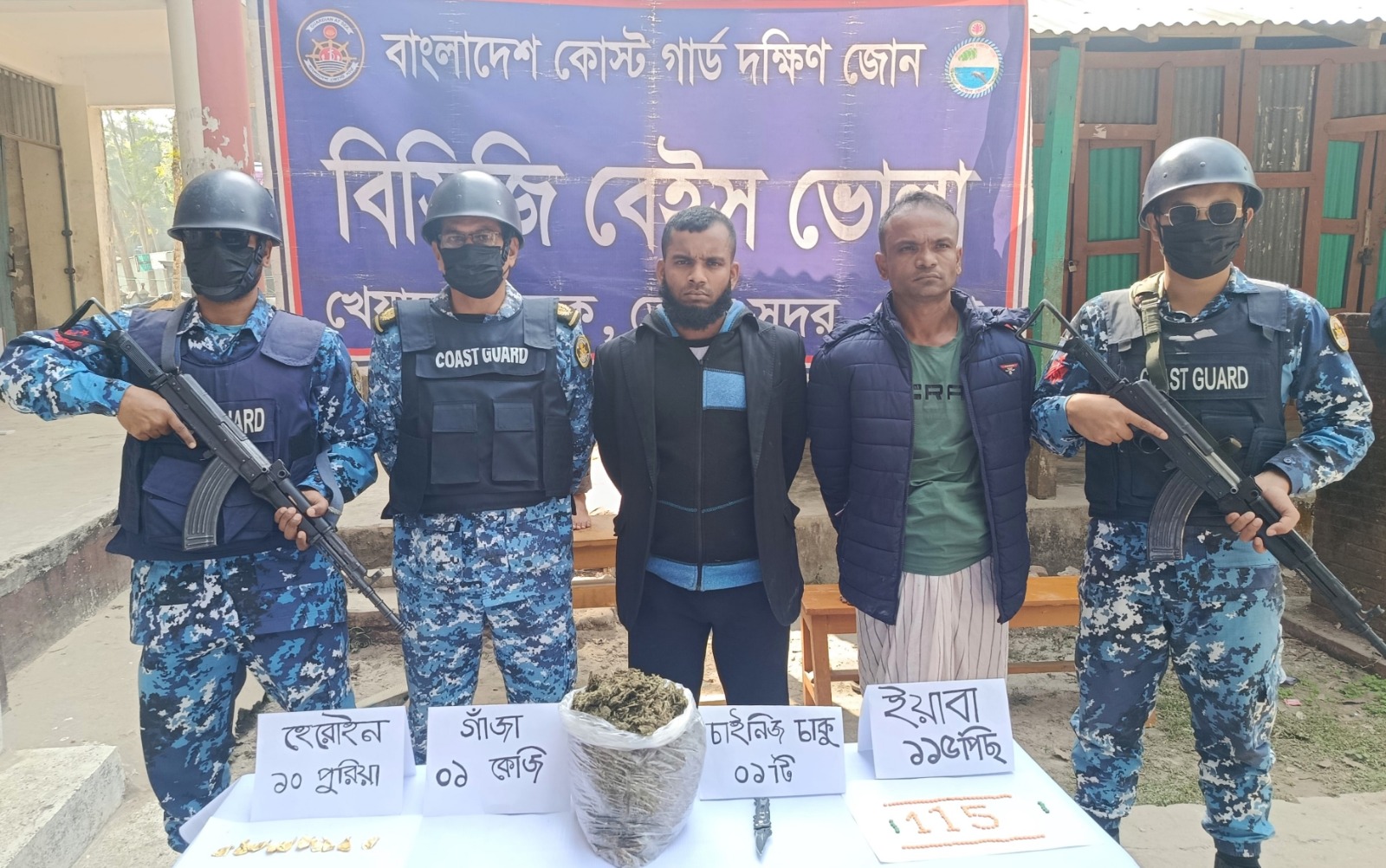 ভোলার দৌলতখান উপজেলায় কোস্ট গার্ডের বিশেষ অভিযানে ইয়াবা, গাঁজা ও হিরোইনসহ দুই মাদক কারবারিকে আটক করা হয়েছে। এ সময় বিপুল পরিমাণ মাদকদ্রব্য জব্দ করা হয়। কোস্ট গার্ড সূত্র জানায়, গোপন