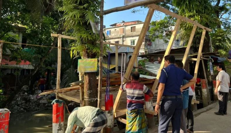 পটুয়াখালী পৌর শহরের ডাকঘরের সামনে সরকারি খালের জমিতে রাতের আঁধারে নির্মিত ‘বকুলতলা স্টার ক্লাব’-এর টিনশেড ঘর শনিবার (২৭ সেপ্টেম্বর) বিকেলে ভেঙে দিয়েছে প্রশাসন। নির্বাহী ম্যাজিস্ট্রেট ও উপজেলা সহকারী কমিশনার