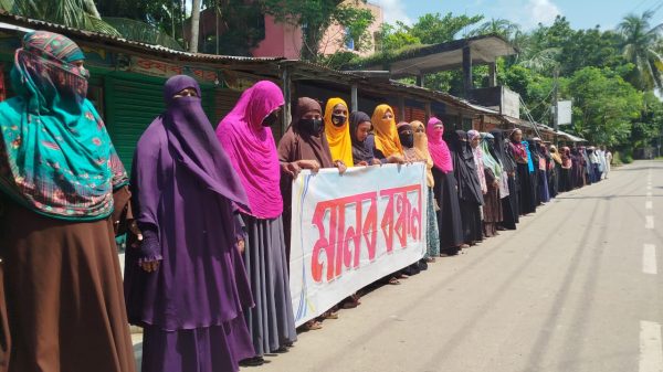 ভোলায় খেয়া ঘাটে চাঁদার দাবীতে দোকান লুট, ভাংচুর ও ব্যবসায়ী আলমগীর মাতাব্বরে উপর নির্মম ভাবে হামলার প্রতিবাদে মানববন্ধন ও বিক্ষোভ কর্মসূচী পালন করেছে বিক্ষুদ্ধ এলাকাবাসী। শনিবার সকালে ভোলা