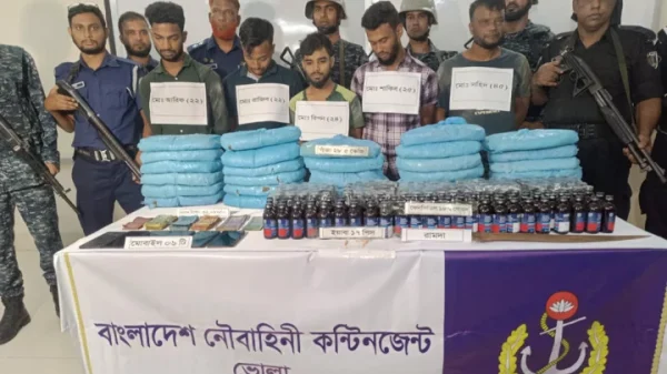 ভোলায় যৌথ বাহিনীর অভিযানে বিপুল পরিমাণ ফেনসিডিল ও গাঁজাসহ পাঁচজনকে গ্রেপ্তার করা হয়েছে। গতকাল বুধবার রাত সাড়ে ১১টার দিকে জেলার সদর উপজেলার বাপ্তা পাইলট এলাকা থেকে তাদের গ্রেপ্তার করা হয়।
