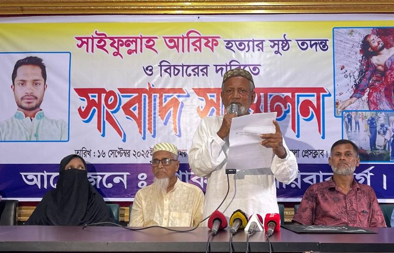 ভোলা সদর উপজেলার ছাত্রলীগের সহ-সভাপতি সাইফুল্লাহ আরিফের মৃত্যুকে “পরিকল্পিত হত্যাকাণ্ড” দাবি করে সুষ্ঠু তদন্ত ও দোষীদের দৃষ্টান্তমূলক শাস্তির দাবিতে সংবাদ সম্মেলন করেছেন নিহতের পরিবার। তারা অভিযোগ করেছেন, পুলিশ ঘটনাটিকে