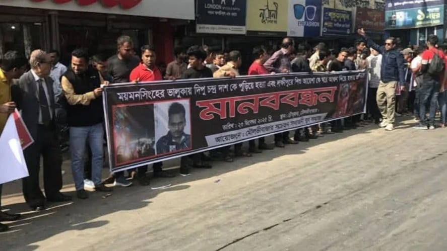 ময়মনসিংহের ভালুকায় পোশাক শ্রমিক দীপু চন্দ্র দাসকে মিথ্যা ধর্ম অবমাননার নামে পিটিয়ে ও পুড়িয়ে হত্যা,লক্ষ্মীপুরে ঘরে তালা দিয়ে আগুন লাগিয়ে শিশু কন্যা আয়েশা আক্তারকে পুড়িয়ে হত্যার প্রতিবাদে ঘন্টা ব্যাপী