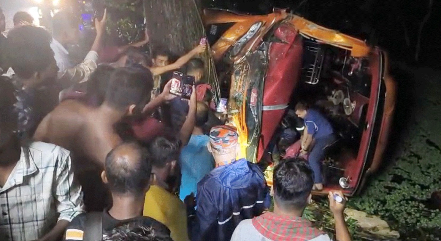 ঢাকা-বরিশাল মহাসড়কে বাস খাদে, নারী নিহত, আহত ৩০